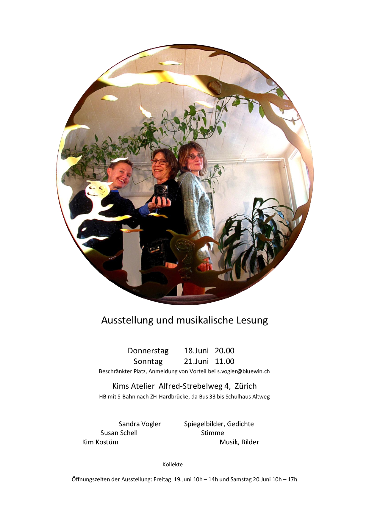 Ort Kims Atelier Alfred-Strebelweg 4, Zürich HB mit S-Bahn nach ZH-Hardbrücke, da Bus 33 bis Schulhaus Altweg